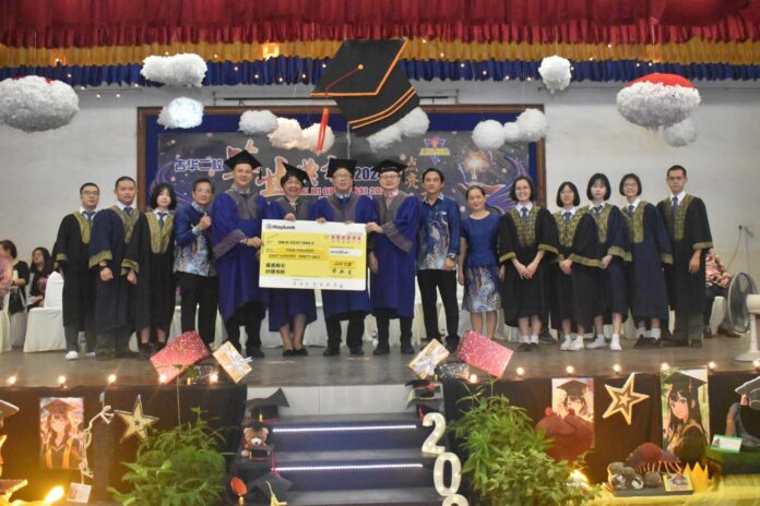 亚罗士打吉华华中二校昨日举办2024年毕业典礼,163名毕业生捐献4890令吉给母校,以示感恩师长和回馈母校。